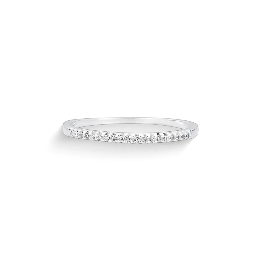 Anel Aparador Aro Fino Cravejado com Zircônia Cristal em Prata 925