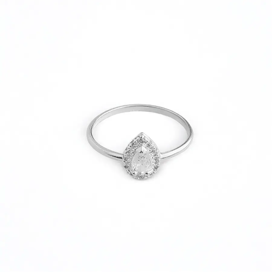 Anel Aro Liso com Gota de Zircônia Cravejada em Prata 925