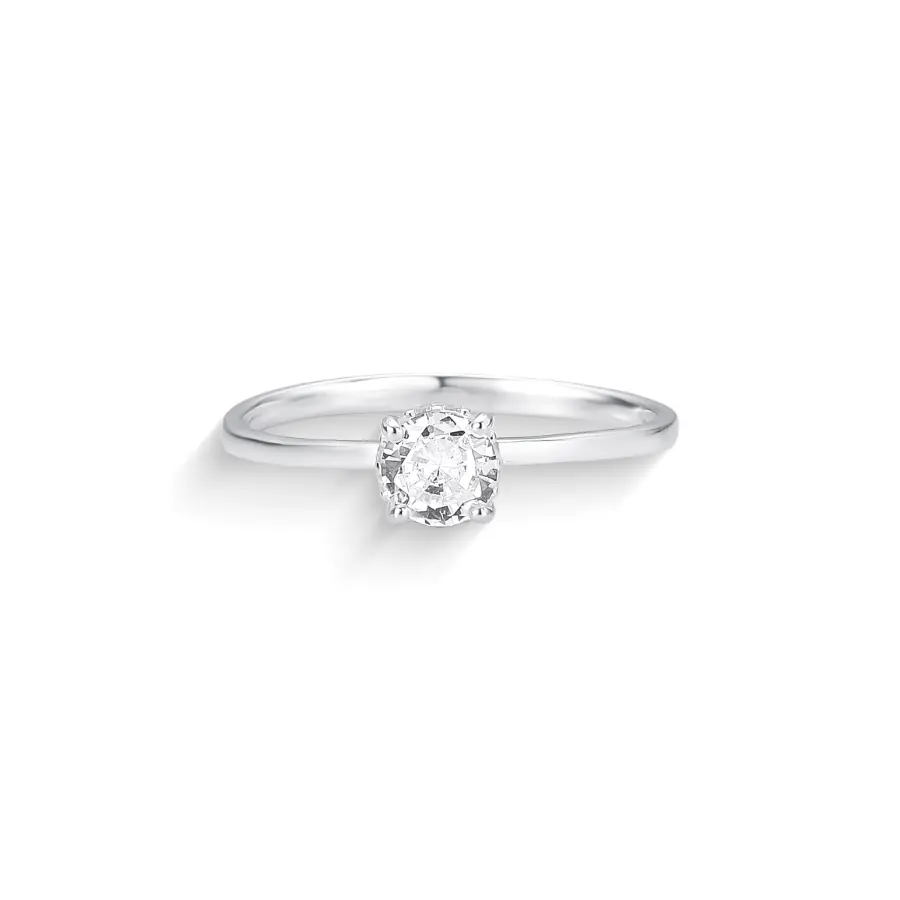 Anel Solitário Aro Liso com Zircônia Cristal em Prata 925