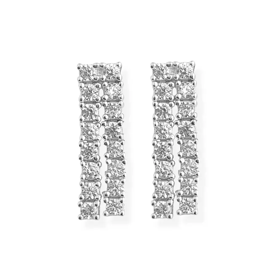 Brinco Dois Palitos Cravejados Com Zircônia em Prata 925.