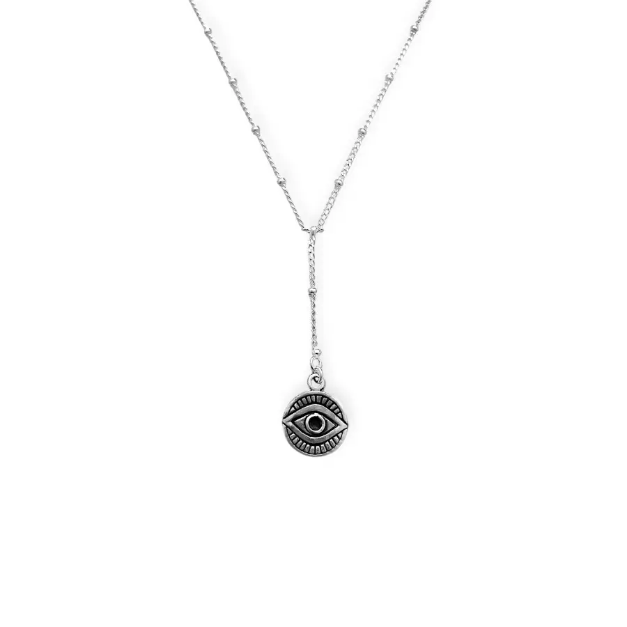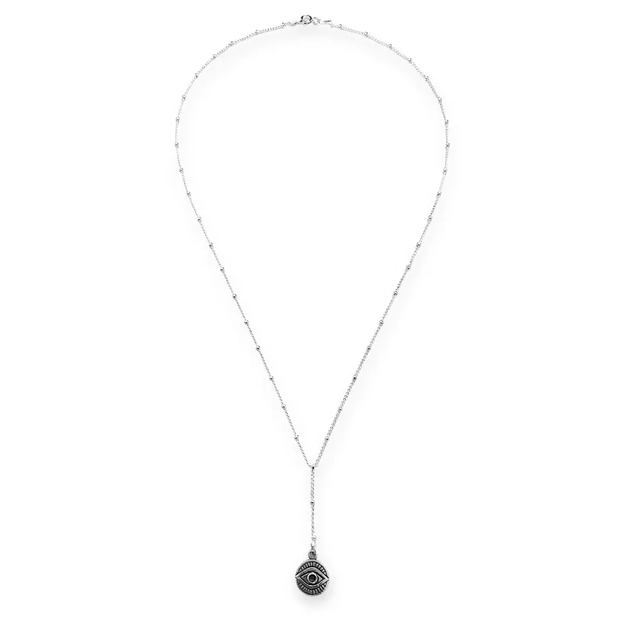 GARGANTILHA COM BOLINHAS E PINGENTE DE OLHO GREGO EM PRATA 925.