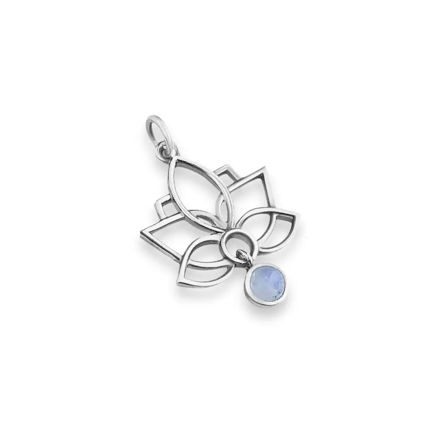 Pingente de Flor de Lótus com Pedra da Lua em Prata 925