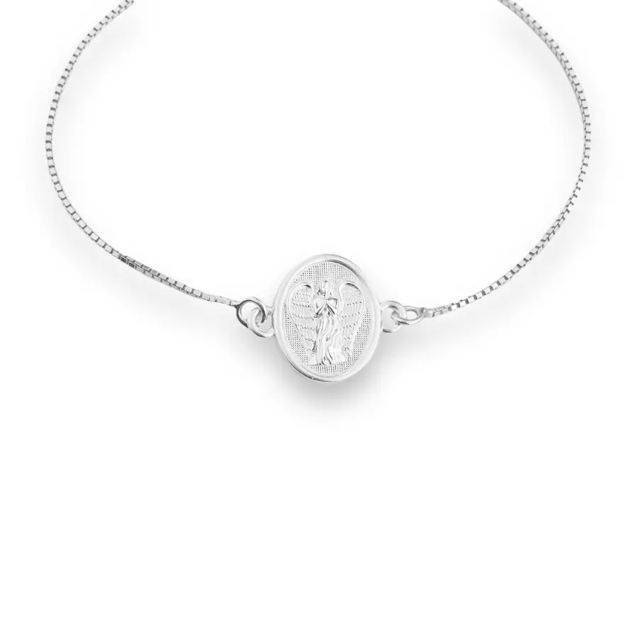 Pulseira com Medalha do Arcanjo Rafael em Relevo em Prata 925.